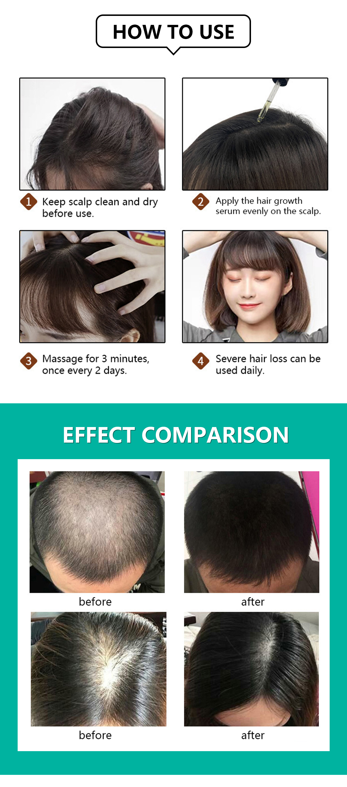 Usage: Apply evenly to scalp, massage for 3 minutes. Use every 2 days or daily for severe hair loss.