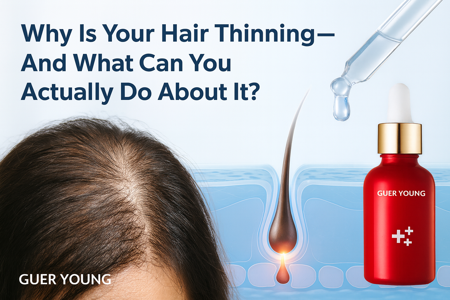 This expert-backed guide explores how hair growth serums work, the key ingredients like biotin and ginger, who should use them, and realistic results timelines—with product tips from GUER YOUNG.